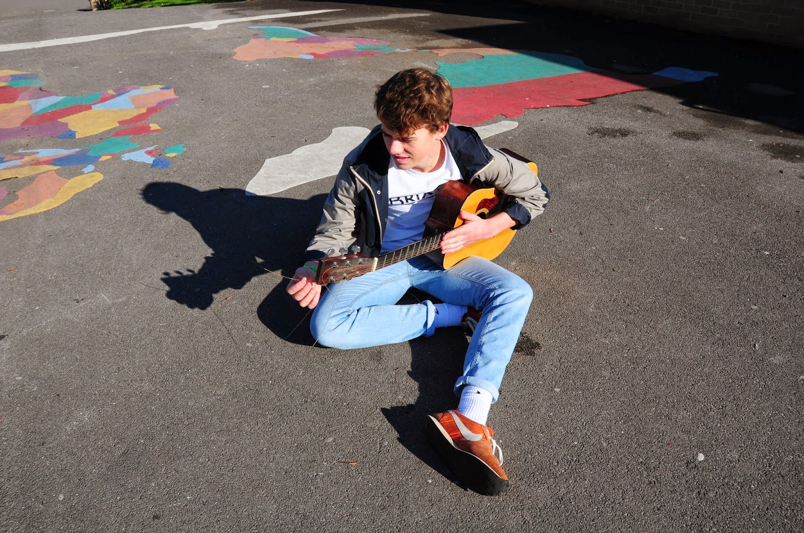 an acoustic guitar so we decided to use an image of Luke sitting down holding